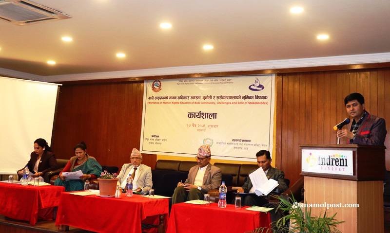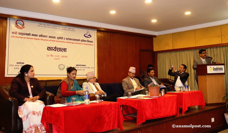 कार्यक्रममा बादी समुदायको मानव अधिकार अवस्थाबारे आयोगका सहसचिव नवराज सापकोटा र बादी समुदायको विषयमा सरकारबाट भए गरेका कार्यहरू सहितको कार्यपत्र संघीय मामिला तथा सामान्य प्रशासन मन्त्रालयका शाखा अधिकृत सुधा रेग्मीले प्रस्तुत गरेका थिए ।