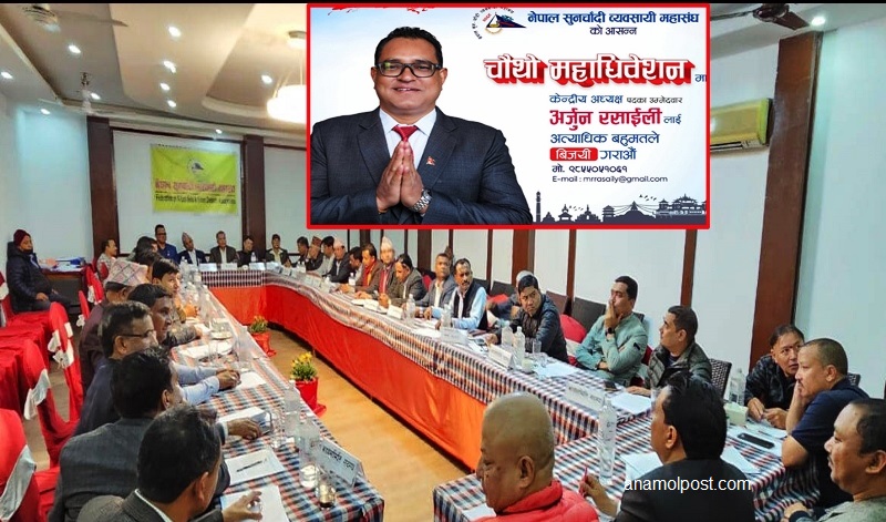 काठमाडौं। नेपाल सुनचाँदी ब्यवसायी महासघंको अध्यक्षमा अर्जुन रसाइलीले अध्यक्ष पदमा उम्मेदवारी घोषणा गरेका छन् ।